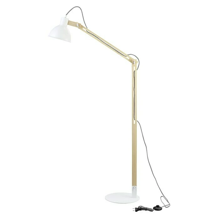 Die 1-flammige Tween Light Stehleuchte Wood ist in jedem Wohnraum eine ideale Ergänzung bei erhöhtem Lichtbedarf und sorgt für bestmögliche Lichtverhältnisse, um eine entspannte Wohnatmosphäre zu ermöglichen. Das Design aus Holz und Metall ist schlicht gehalten, wodurch sich die Leuchte sehr gut verschiedenen Wohnkonzepten anpasst. Durch das bewegliche Gelenke ist eine optimale Ausrichtung des Lichtscheins je nach individuellen Bedürfnissen möglich. Mit dem Fußschalter kann die Leuchte ein- und ausgeschaltet werden. Da sie mit ihrer E27 Fassung für Leuchtmittel der Energieeffizienzklassen von A++ bis E geeignet ist, können sehr sparsame LED-Leuchtmittel verwendet werden.